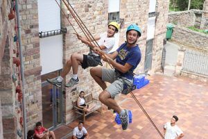 A large proportion of the multi-adventure activities offered on school trips revolve around rope-based activities. Climbing is one such activity. This activity and its variants have become one of the main attractions of school trips. Traditional climbing involves traversing faces with a steep gradient, normally with the support of ropes and harnesses. Climbing is an increasingly popular sport that is gaining more and more enthusiasts, and it holds great appeal for young people. The sensation of ascending a natural rock face is unique. It encourages concentration and decision-making, as well as a greater awareness of one’s own psychomotor skills and increased confidence in them. From climbing, various other multi-adventure activity options have also developed, based on the same principle.